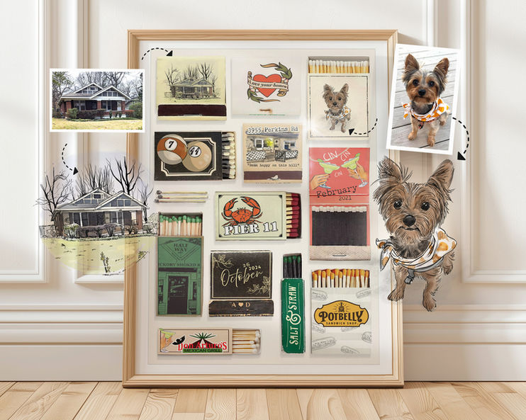 All the places you made memories in made into a creative and vintage matchbook design!